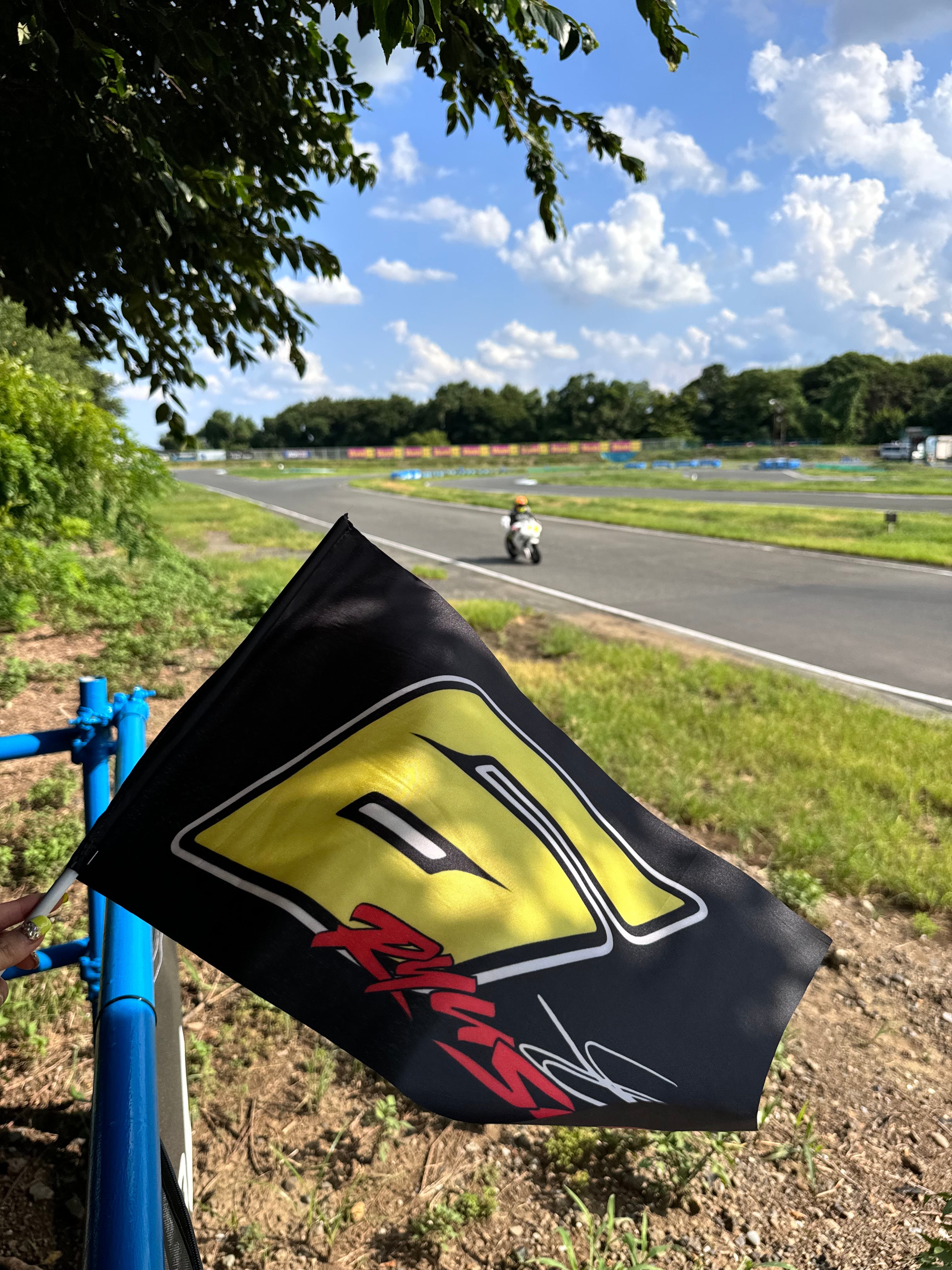 ゼッケンロゴとRYUSEIロゴが映える、ブラックベースの特別仕様フラッグです。